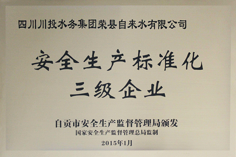 榮縣水司安全標(biāo)準(zhǔn)化證書