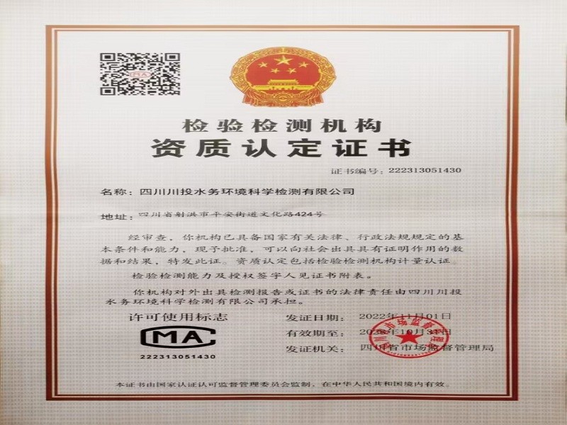 射洪水司CMA檢測(cè)資質(zhì)證書