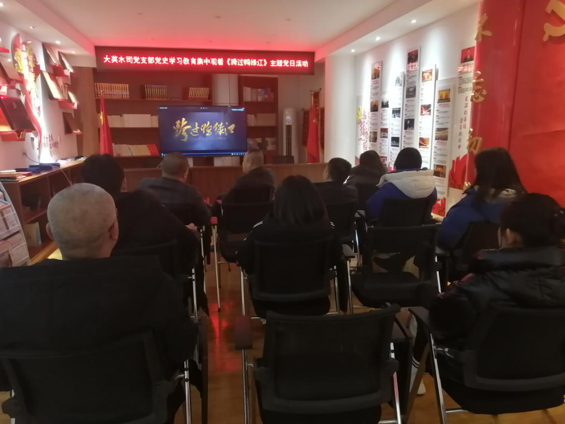 1月19日下午,川投水務(wù)大英公司黨支部,根據(jù)川投水務(wù)黨委統(tǒng)一部署安排,組織全體黨員在公司黨員活動室,集中觀看了《跨過鴨綠江》紅色主題電影。