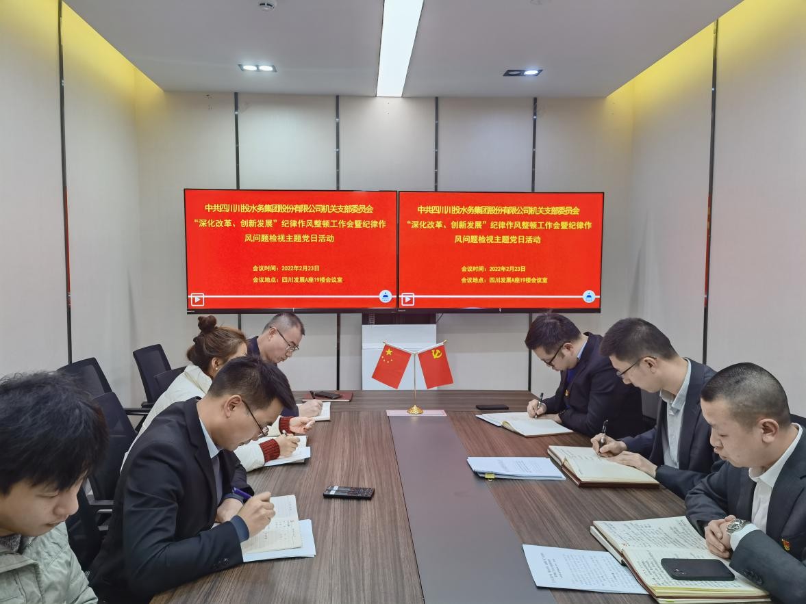 2022年2月23日,川投水務(wù)集團(tuán)機(jī)關(guān)黨支部為全面貫徹落實(shí)四川發(fā)展黨委《關(guān)于開展“深化改革、創(chuàng)新發(fā)展”紀(jì)律作風(fēng)整頓工作的通知》要求,進(jìn)一步增強(qiáng)隊(duì)伍凝聚力和戰(zhàn)斗力,優(yōu)化發(fā)展環(huán)境,切實(shí)助推企業(yè)實(shí)現(xiàn)高質(zhì)量發(fā)展,機(jī)關(guān)黨支部通過主題黨日活動(dòng)的形式,組織召開“深化改革、創(chuàng)新發(fā)展”紀(jì)律作風(fēng)整頓工作會(huì)暨紀(jì)律作風(fēng)問題檢視會(huì)。