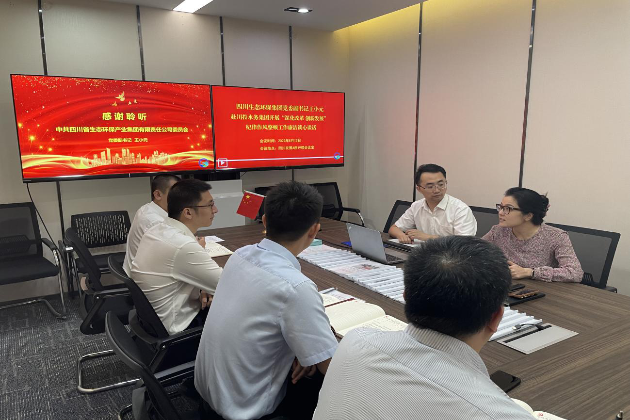 5月13日,按照四川發(fā)展黨委、四川生態(tài)環(huán)保集團(tuán)黨委“深化改革、創(chuàng)新發(fā)展”紀(jì)律作風(fēng)整頓工作總體安排,為持續(xù)推進(jìn)紀(jì)律作風(fēng)整頓工作走深走實(shí),四川生態(tài)環(huán)保集團(tuán)黨委副書(shū)記王小元赴川投水務(wù)集團(tuán)開(kāi)展“深化改革、創(chuàng)新發(fā)展”紀(jì)律作風(fēng)整頓專項(xiàng)督導(dǎo)檢查工作暨講授“轉(zhuǎn)作風(fēng) 促發(fā)展”持之以恒加強(qiáng)作風(fēng)建設(shè)專題黨課,川投水務(wù)集團(tuán)黨委委員、副總經(jīng)理嚴(yán)斯亮,副總經(jīng)理譚衛(wèi)鵬,黨群紀(jì)檢工作部部長(zhǎng)李至彬陪同檢查。