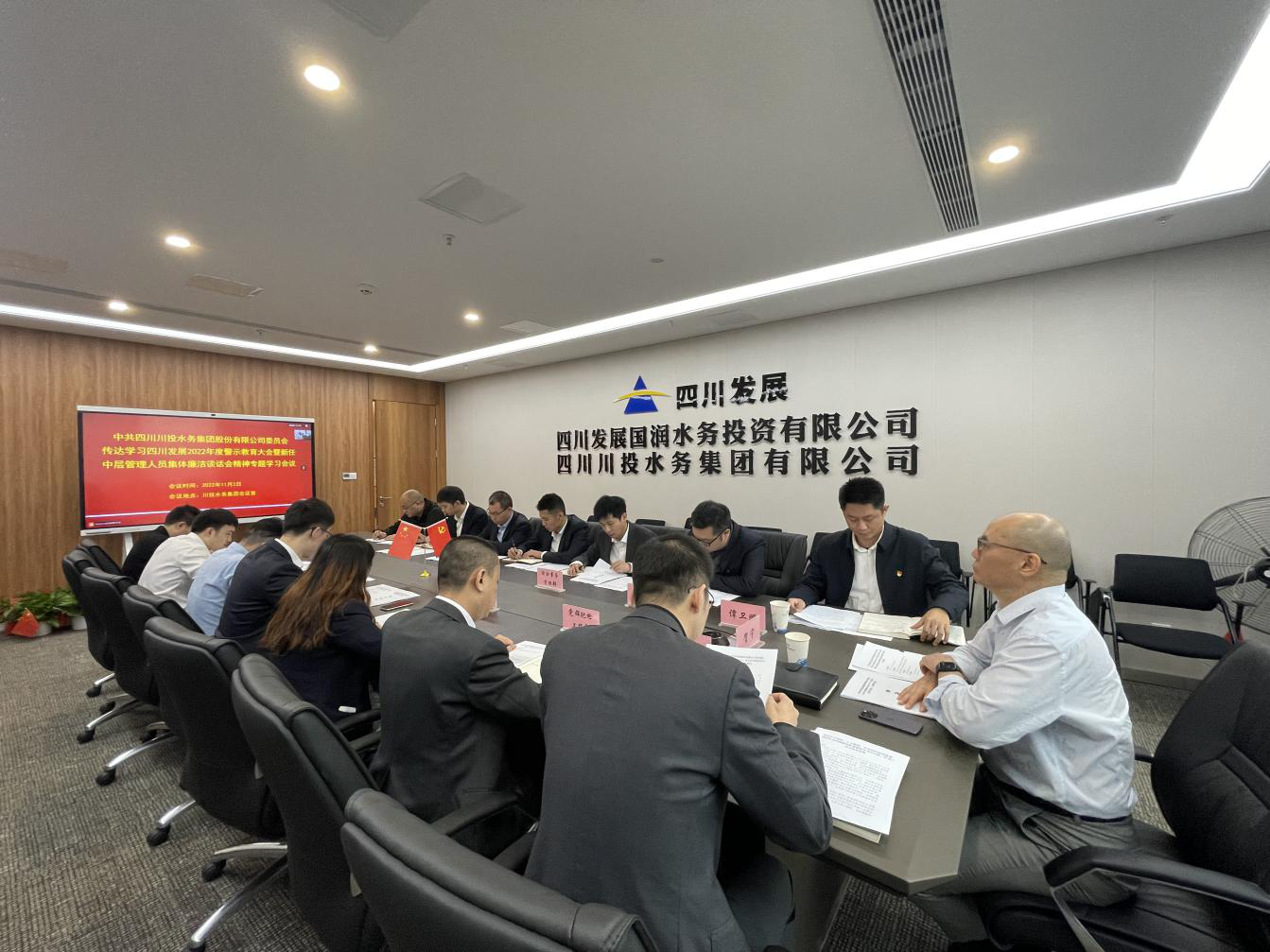 11月2日,為進一步增強干部廉潔自律意識,筑牢拒腐防變的思想防線,推動全面從嚴治黨、全面從嚴治企,深入開展“深化改革、創(chuàng)新發(fā)展”紀律作風(fēng)整頓活動,營造風(fēng)清氣正的良好氛圍。川投水務(wù)集團黨委召開傳達學(xué)習(xí)四川發(fā)展2022年度警示教育大會暨新任中層管理人員集體廉潔談話會精神專題學(xué)習(xí)會,會議由川投水務(wù)集團副總經(jīng)理譚衛(wèi)鵬主持。